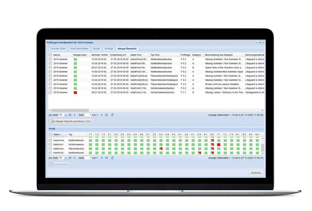 The Pool Safety modules can be used online and offline. In the latter case, we have a desktop app that can be used to enter the data offline, e.g. by the pool testers directly on site, where they may have no or only poor mobile data coverage.