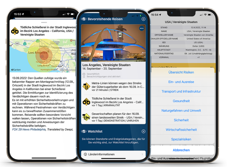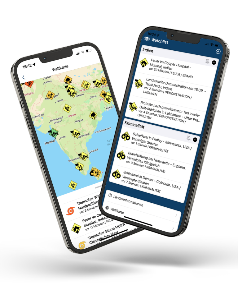 Natural disasters and global risks increasingly highlight the importance of travel security for business travellers. The A3M Global Monitoring App provides you with an effective early warning and information system. The app informs the respective user worldwide about dangers and events in the respective environment based on the geo-position of the smartphone.
